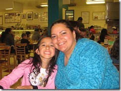 IMG_3994Here is a recent picture taken of us** together last week I spent Gabby’s  Spring Break in CA with her and her brother.  We had a lot of fun together!  I can hardly believe how much she’s grown since I saw her Nov ‘10; in kindergarten and now reading, writing, doing math and still dancing!   We took them to the Ice Creamery where we indulged in some good old fashioned ice cream sundae creations – oh my!!